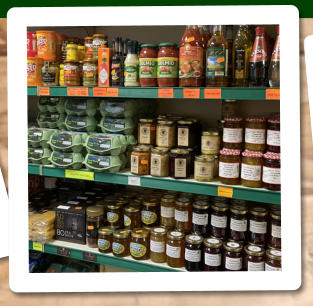 some fruit juices, fresh herbs, dried fruits, cheeses, coleslaws, jams, cereal bars, teas, pastas and bakery